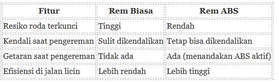 - ✅ Meningkatkan Kendali saat Rem Mendadak Anda tetap bisa mengarahkan mobil untuk menghindar, meskipun sedang mengerem keras.